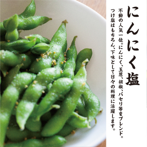 にんにく、玉ねぎ、胡椒、パセリをバランスよくブレンドし、にんにく本来の香ばしい風味を最大限に引き出しました。「にんにく塩」は、その豊かな香りと旨味で、毎日の料理を手軽に格上げしてくれる一本です。