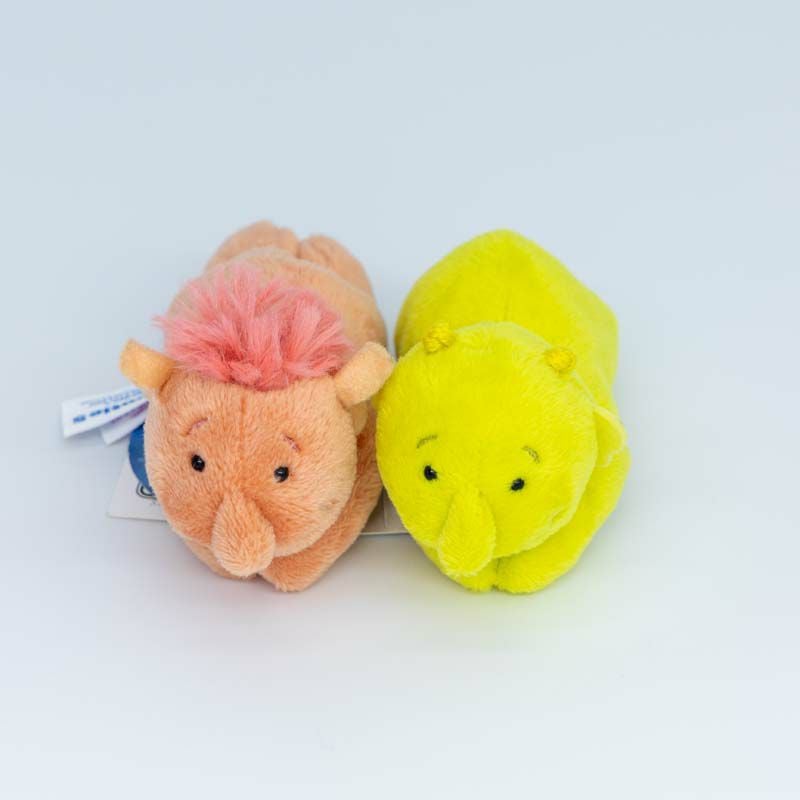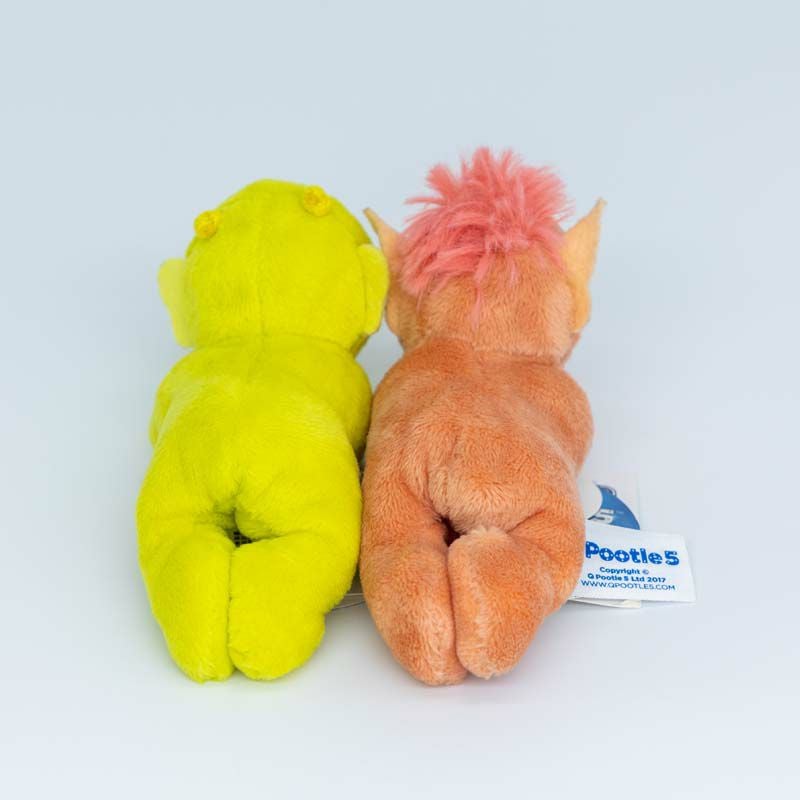 プートルとウープシーは、イギリスで出版されたこども向けの本「Q Pootle 5」がアニメーション化され、ドイツ公共放送局ZDFやBBCのこども向けチャンネルでも放送された大人気アニメのキャラクターです。宇宙を旅する緑色のプートル、ピンク色のウープシーはその親友です。