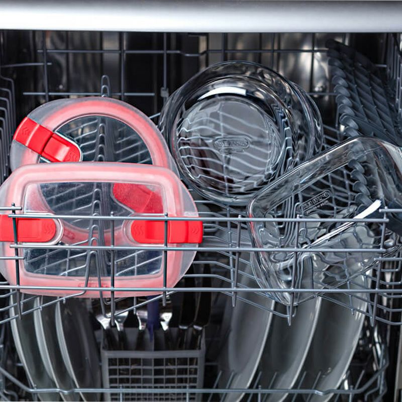 フタがついていて赤いスチームポットをスライドすれば蒸気を逃がせるので、そのまま電子レンジにかけられます。ラップが要らないので経済的で環境にも優しいですね。