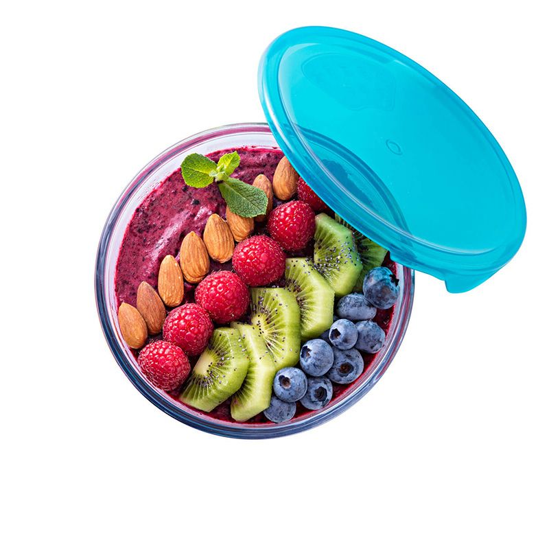 フランスで生産されている高性能な耐熱ガラスは-40℃の冷凍庫から+300℃のオーブンにまで耐え、耐熱温度差は220℃。そのため加熱してから冷蔵庫で保存し、温めなおすまで一つのボウルで出来ます。