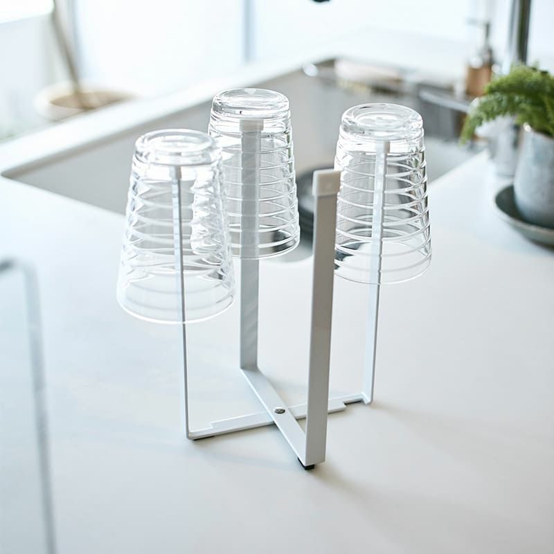 コップを乾かすことができたり、タブレットを立てかけられたりと使い方は自由自在。また使わないときは、折りたたんで収納できます。