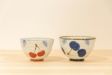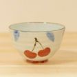 さくらんぼの手描きの絵柄が愛しいペアの茶碗